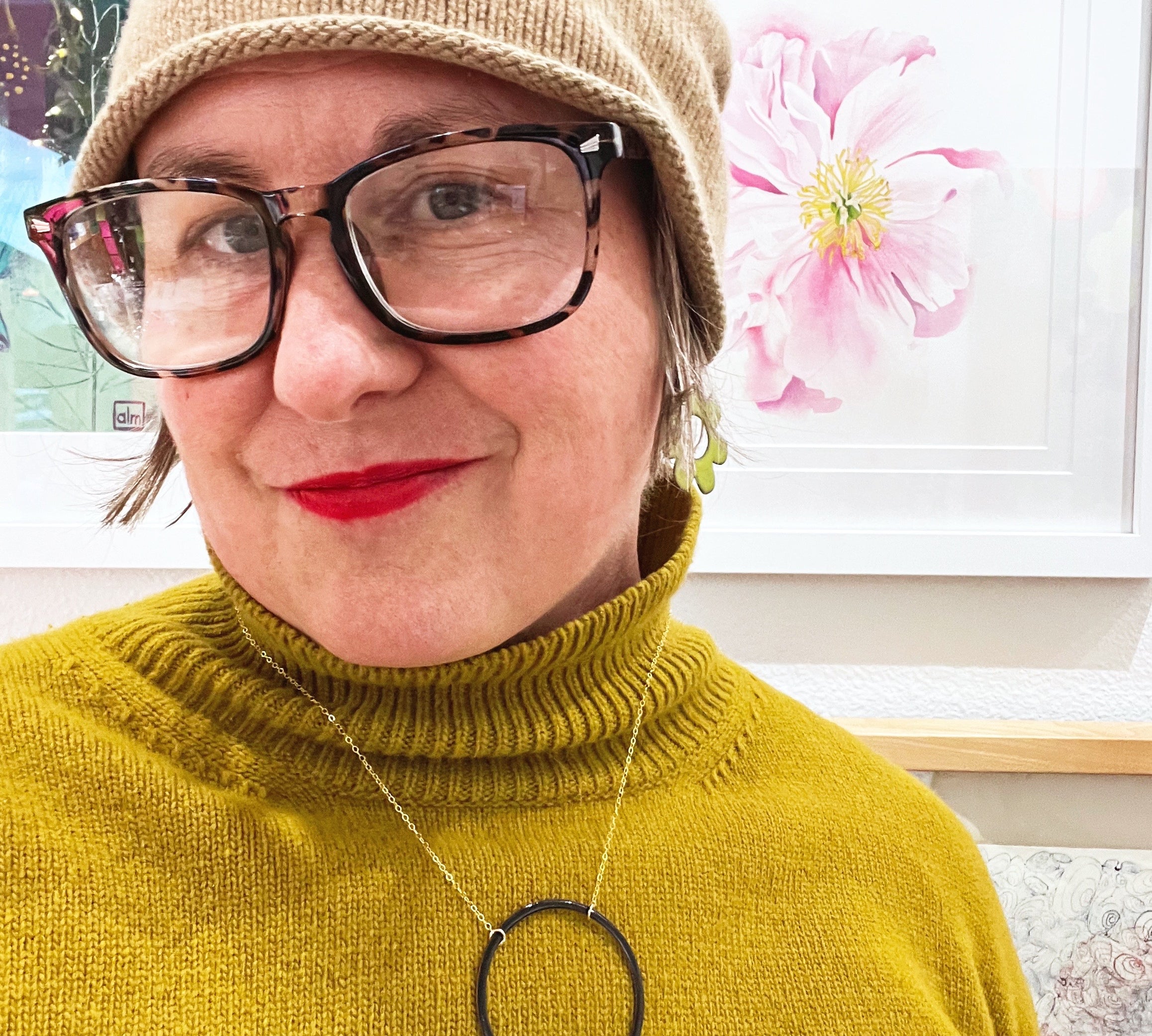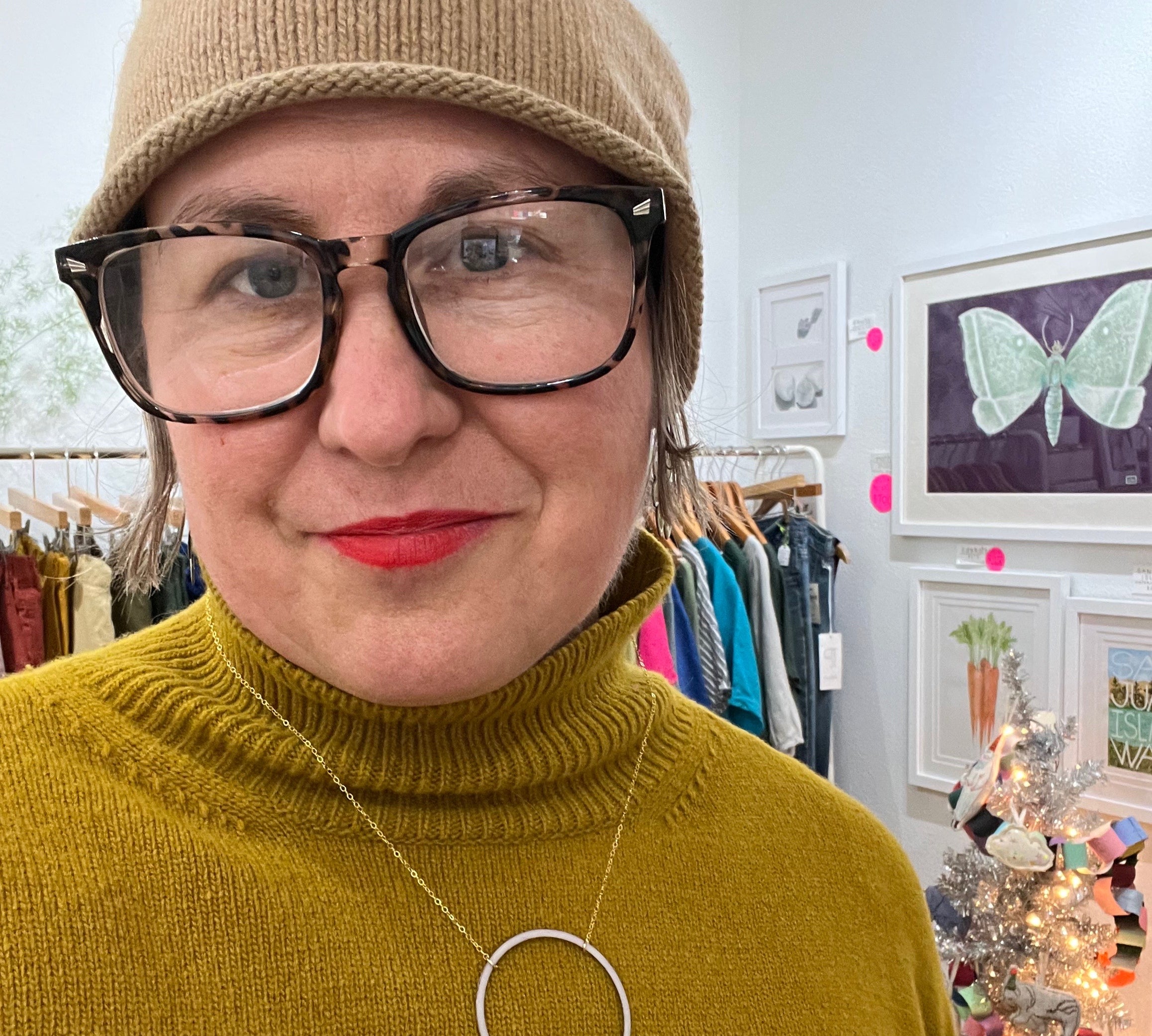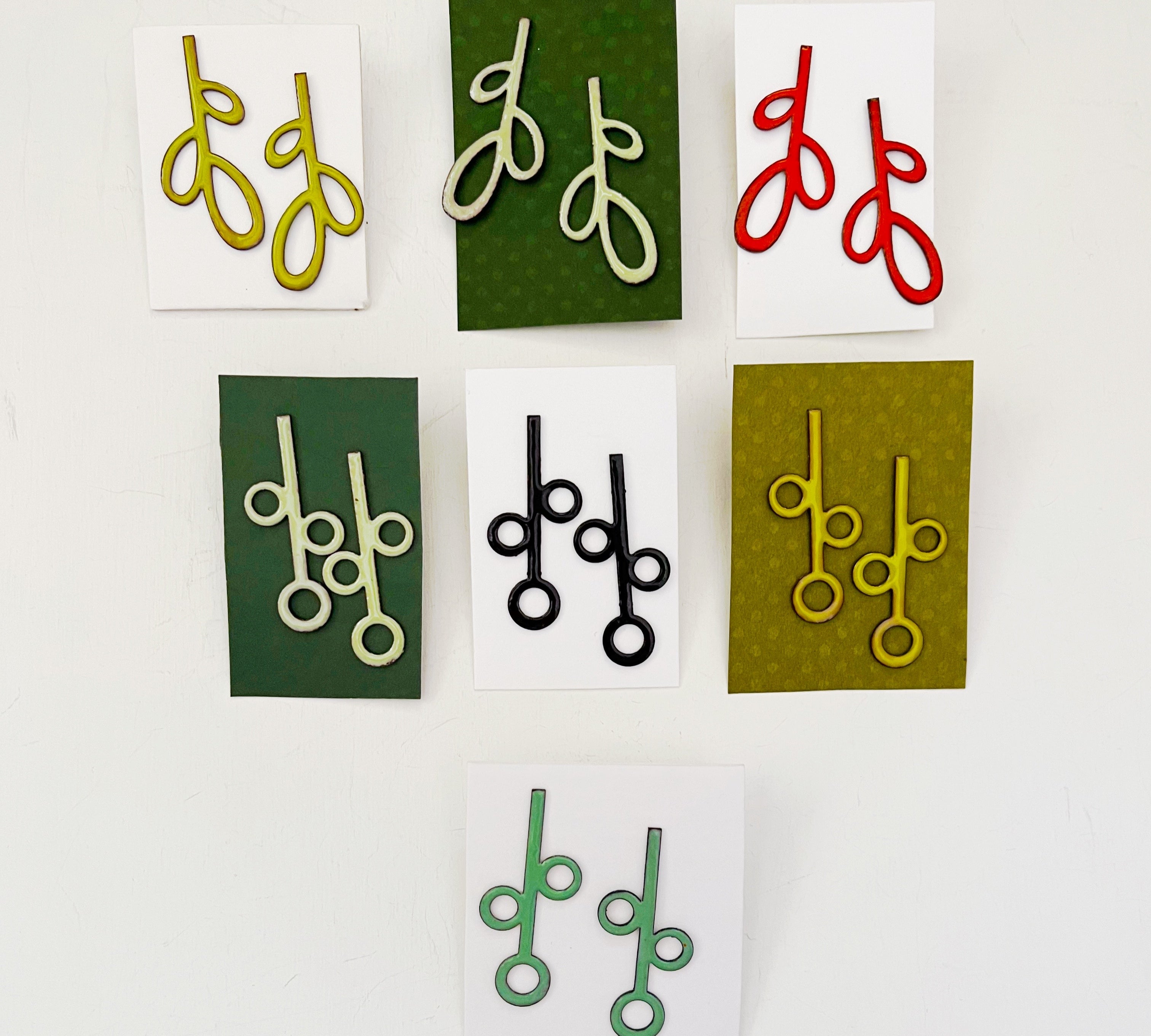 "We recently purchased a pair of the outline hoops in gray/chartreuse for a friend celebrating her 50th birthday. She loved them! Amazing craftsmanship, beatiful colors. Alisha is a gem! I eagerly await her store, Fern, opening soon!"