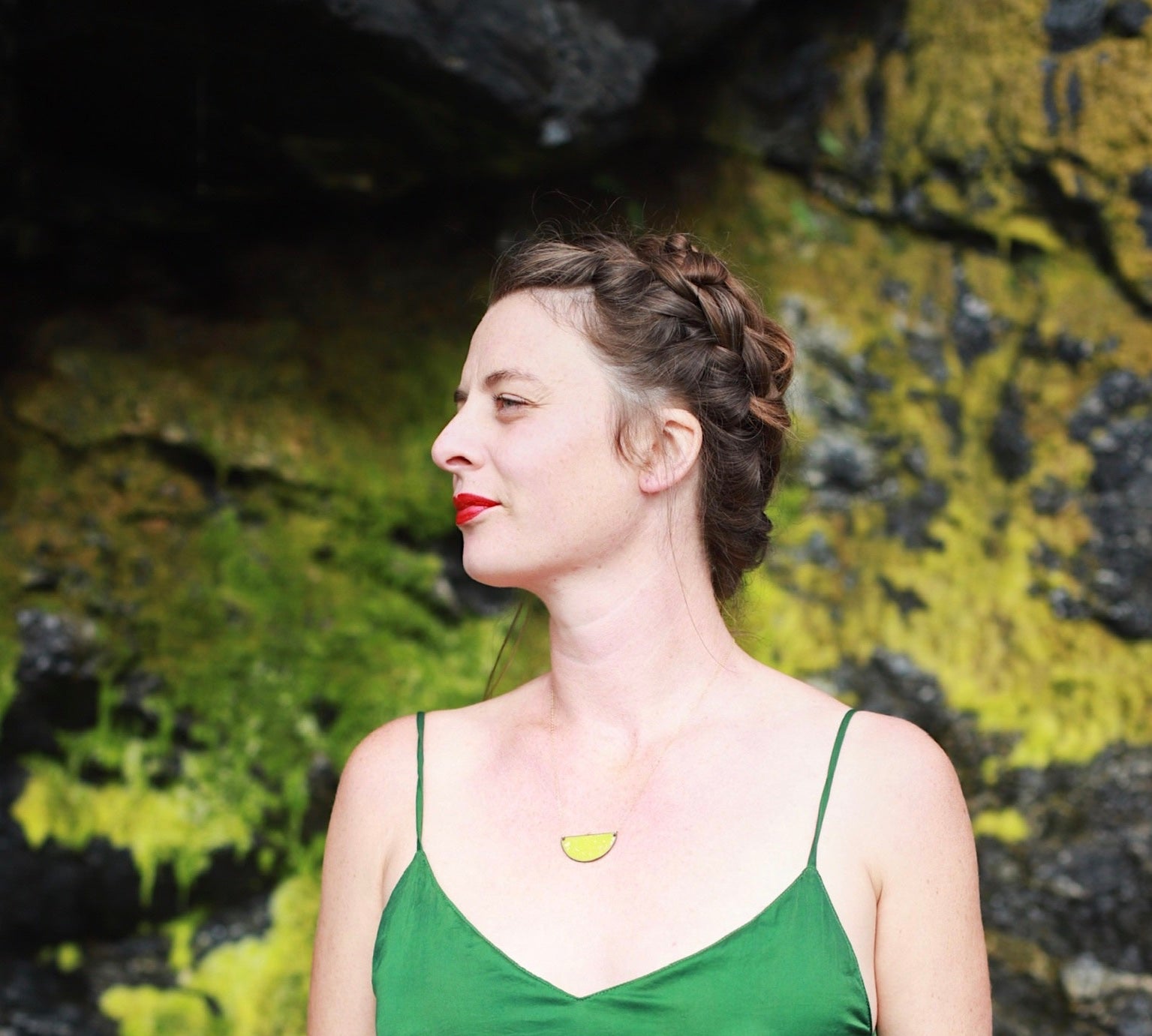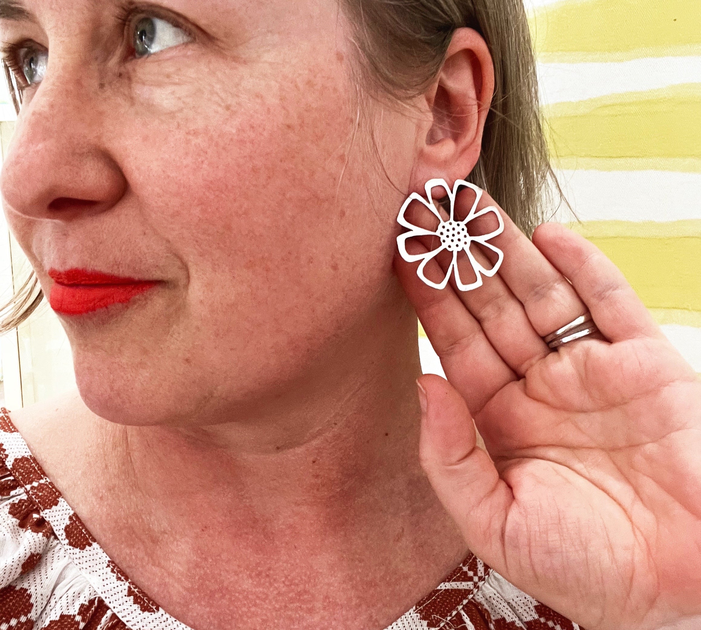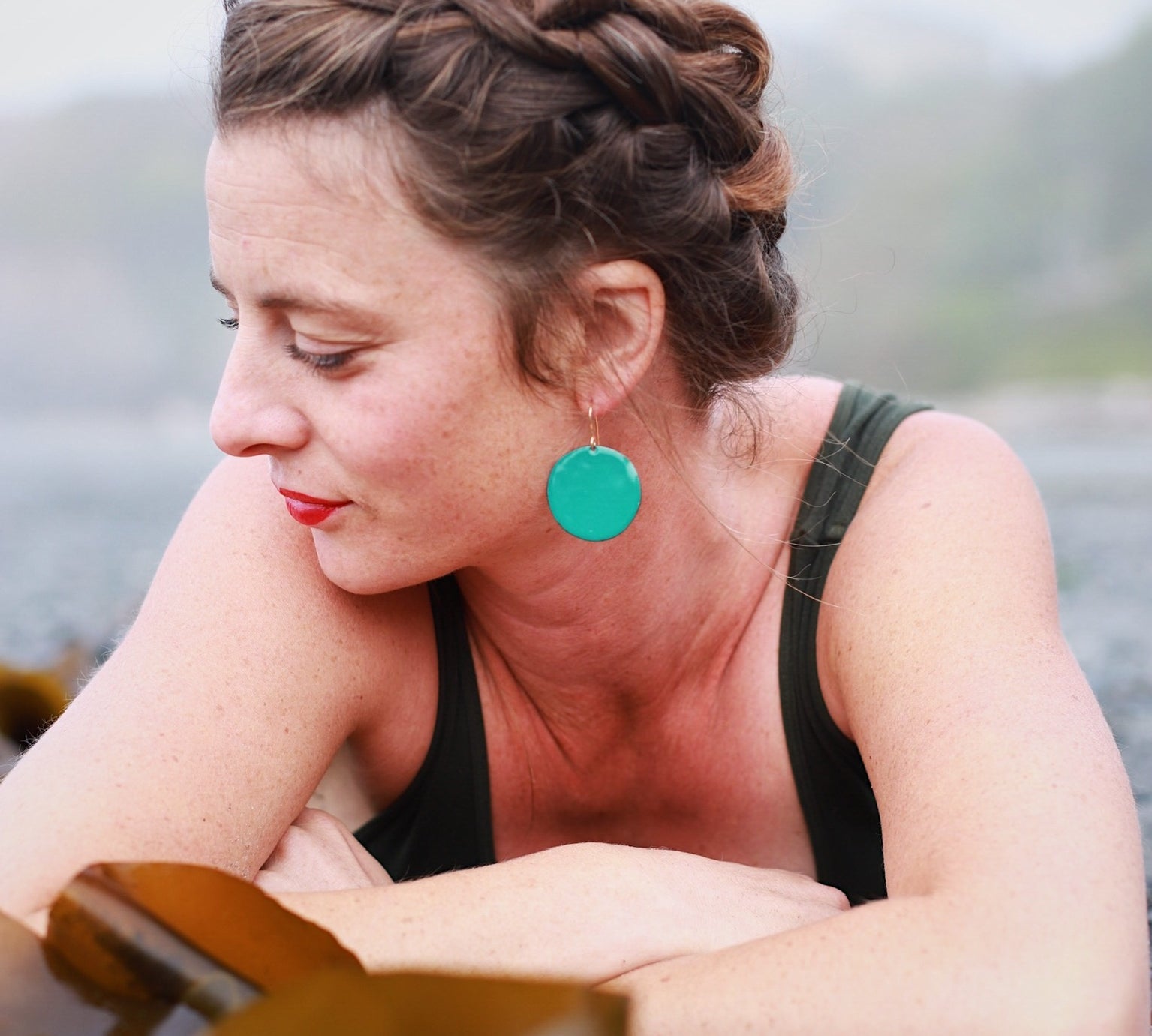 "We recently purchased a pair of the outline hoops in gray/chartreuse for a friend celebrating her 50th birthday. She loved them! Amazing craftsmanship, beatiful colors. Alisha is a gem! I eagerly await her store, Fern, opening soon!"